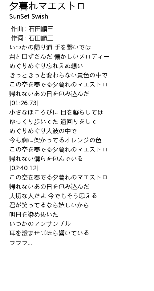 | [03:02.67] | この空を奏でる夕暮れのマエストロ |