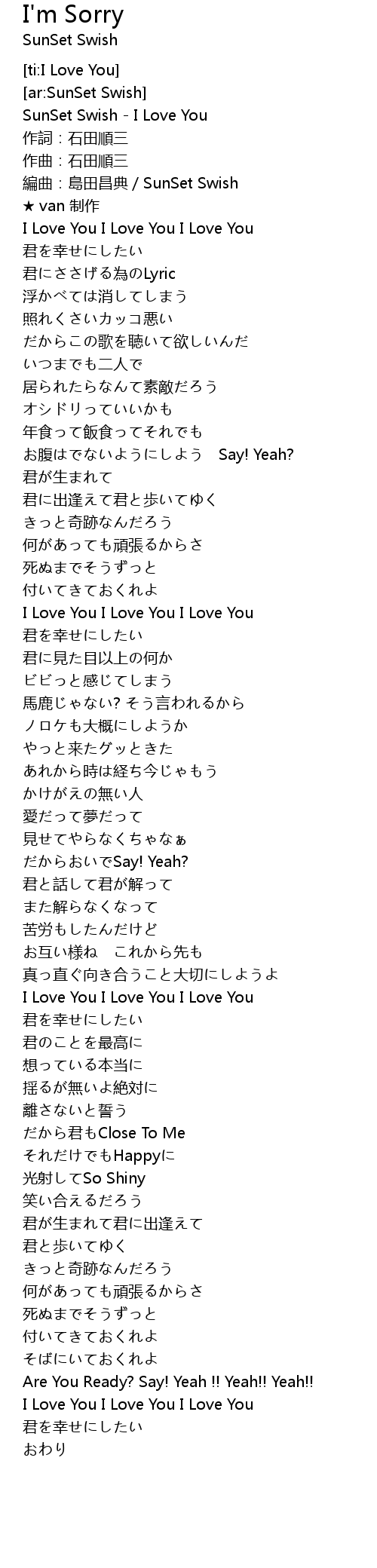| [04:18.64] | I Love You I Love You I Love You |
