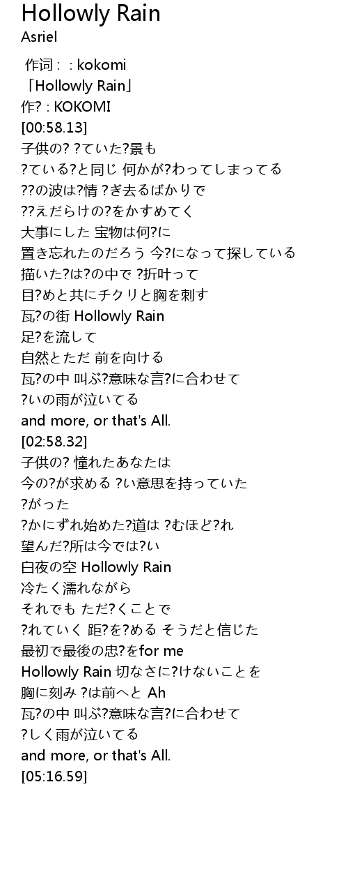 | [00:18.13] | 「Hollowly Rain」 |