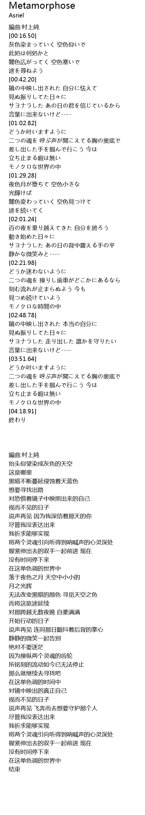 | [04:14.05] | モノクロな世界の中 |