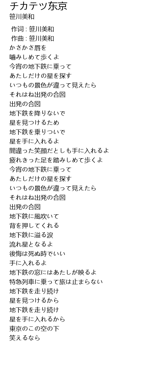| [00:37.000] | 今宵の地下鉄に乗って |