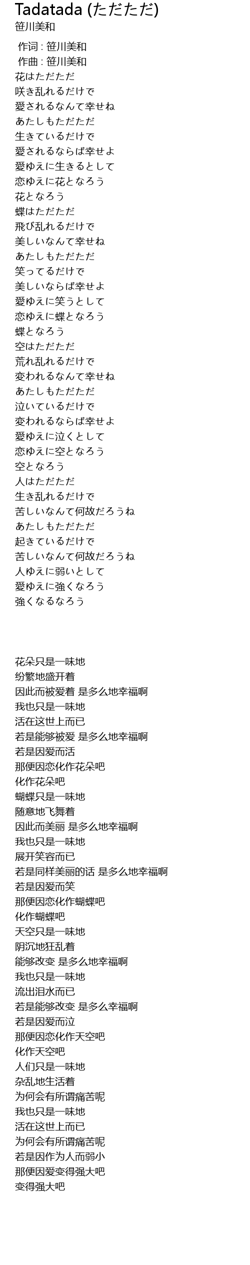 Tadatada Lyrics