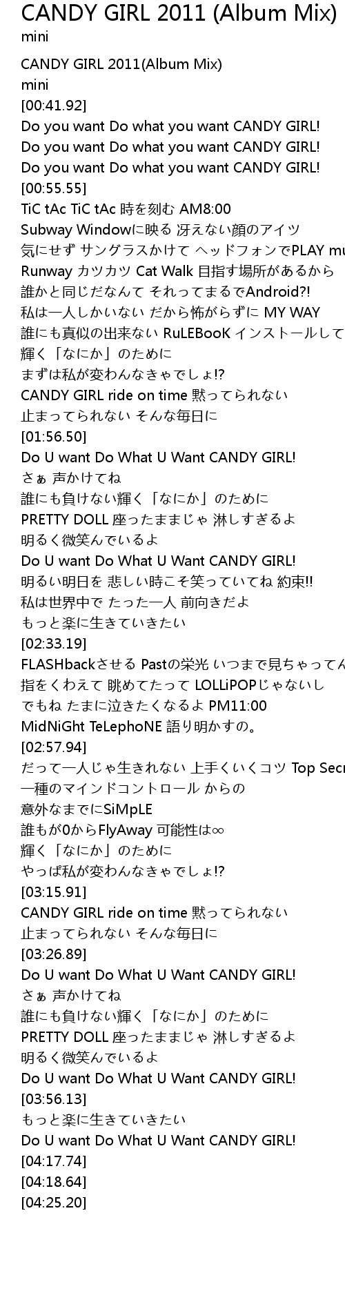 | [04:02.33] | Do U want Do What U Want CANDY GIRL! |