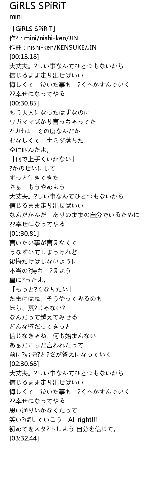 | [00:01.18] | 「GiRLS SPiRiT」 |