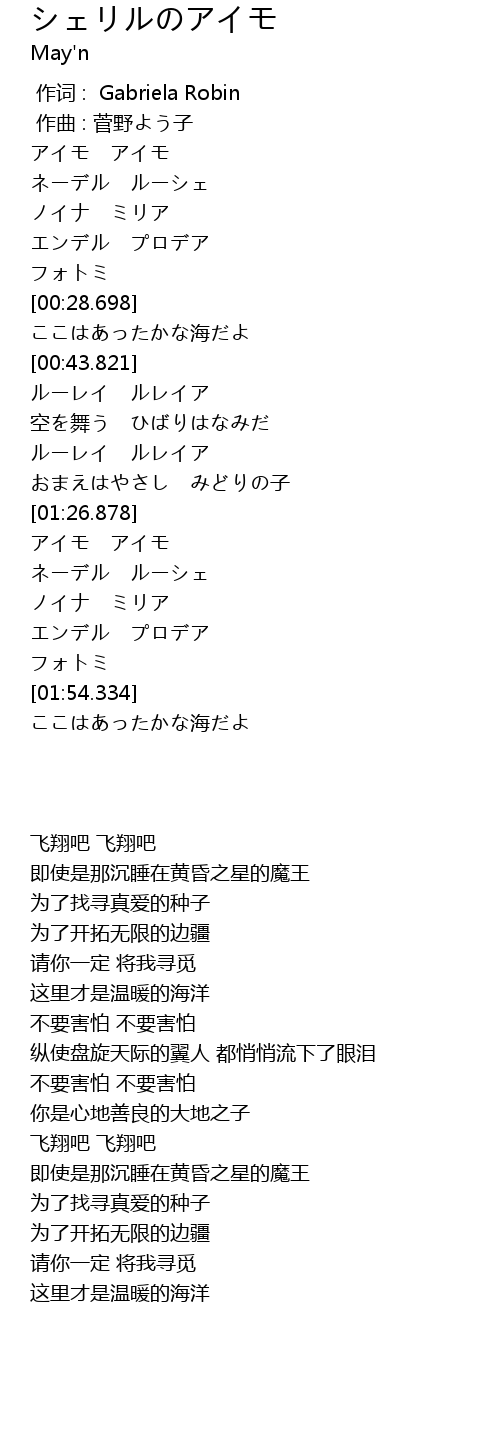 | [00:59.130] | 空を舞う ひばりはなみだ |