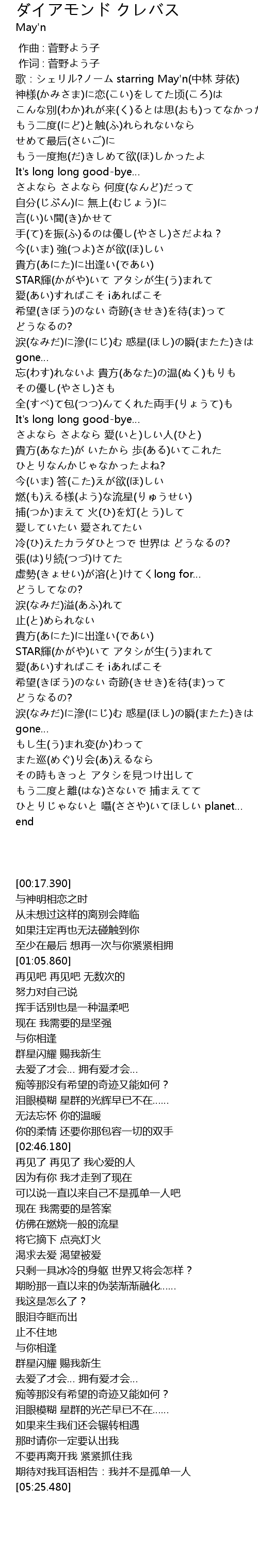 | [00:17.390] | 歌:シェリル?ノーム starring May'n(中林 芽依) |
