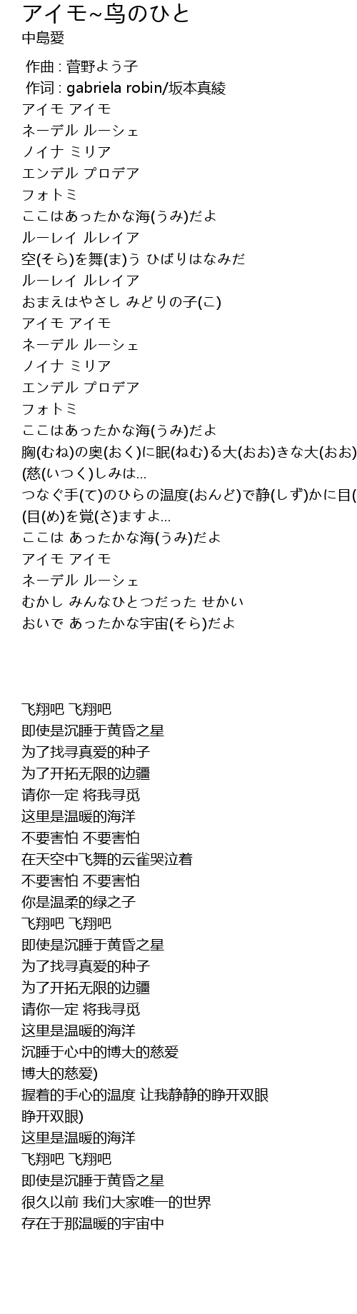 | Song | アイモ~鸟のひと |