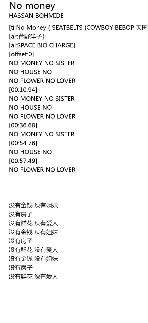 | [ti:No Money(SEATBELTS (COWBOY BEBOP 天国の扉 O.S.T.))] | |