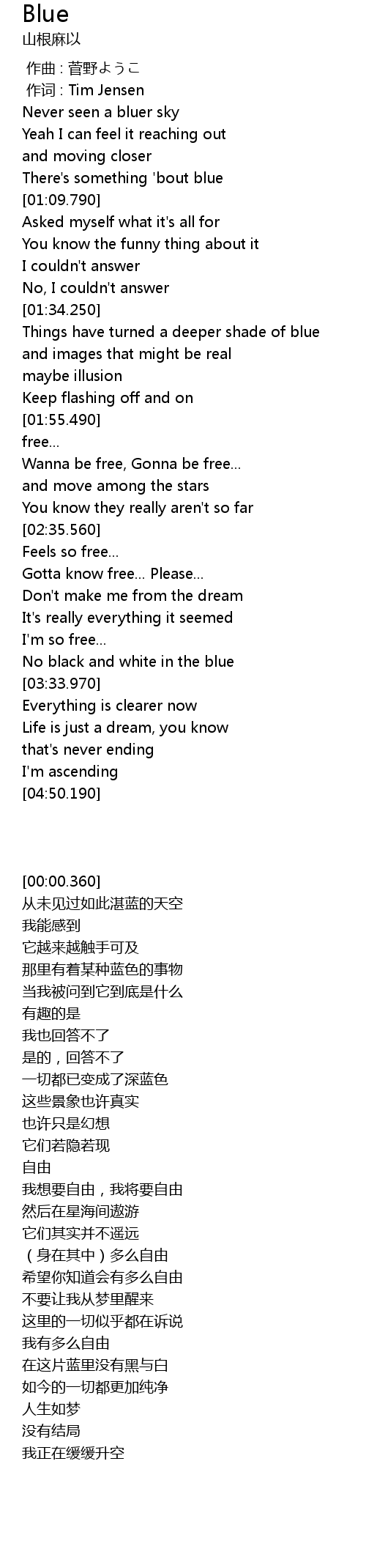 | [03:22.080] | No black and white in the blue |