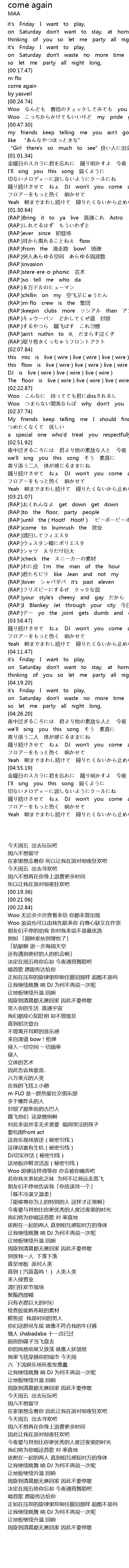 | [01:38.09] | (RAP:)Bring it to ya live 直通これ Astro |