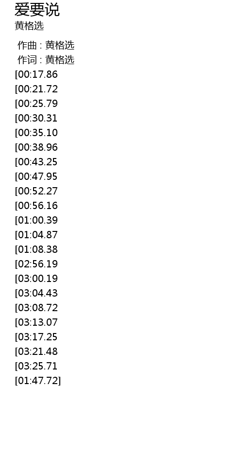 | [03:47.18][03:13.07][01:27.91] | 爱要说 爱要做 |