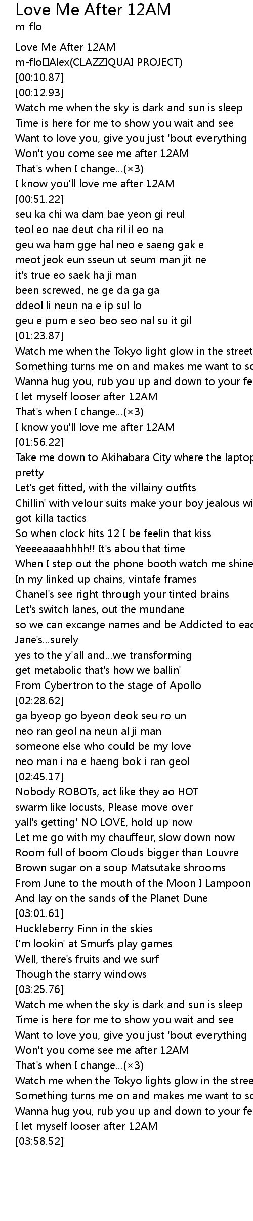 | [00:47.74] | I know you'll love me after 12AM |