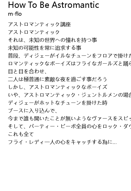 | Song | How To Be Astromantic |