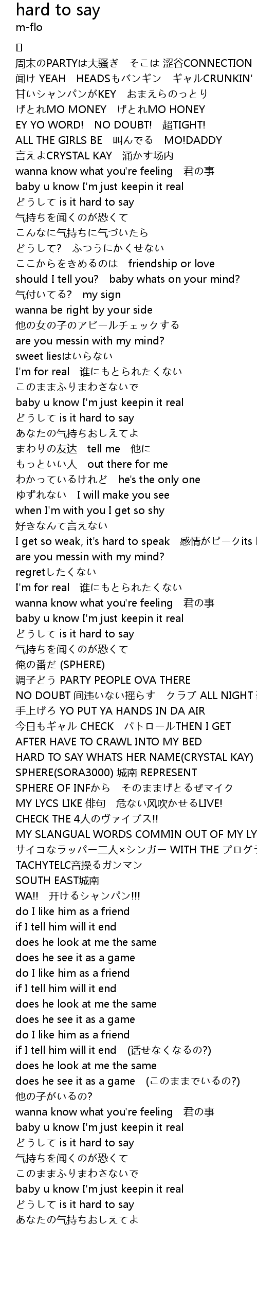 | HARD TO SAY WHATS HER NAME(CRYSTAL KAY) 叫べ | |