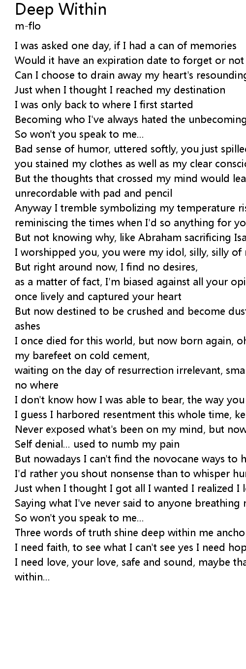 I need love, your love, safe and sound, maybe that's all I need, from deep within... |