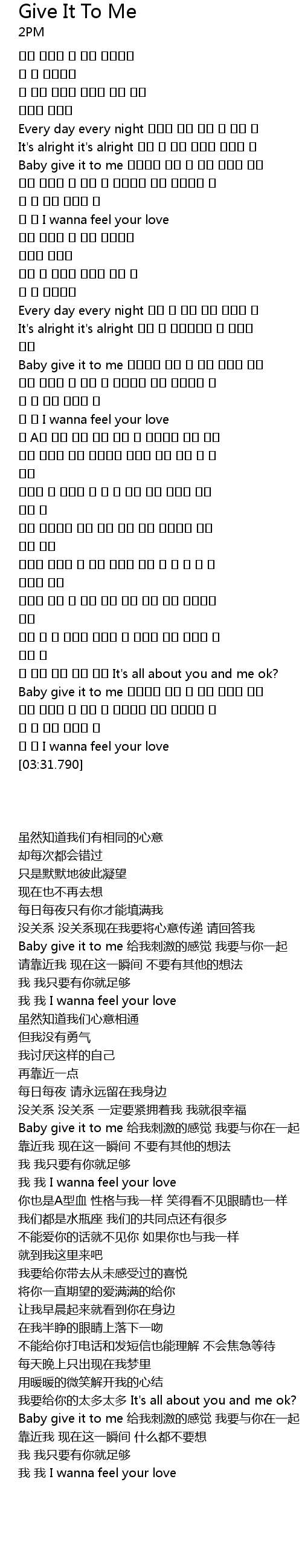 | [02:42.280] | Baby give it to me 짜릿함을 내게 줘 너와 함께할 거야 |