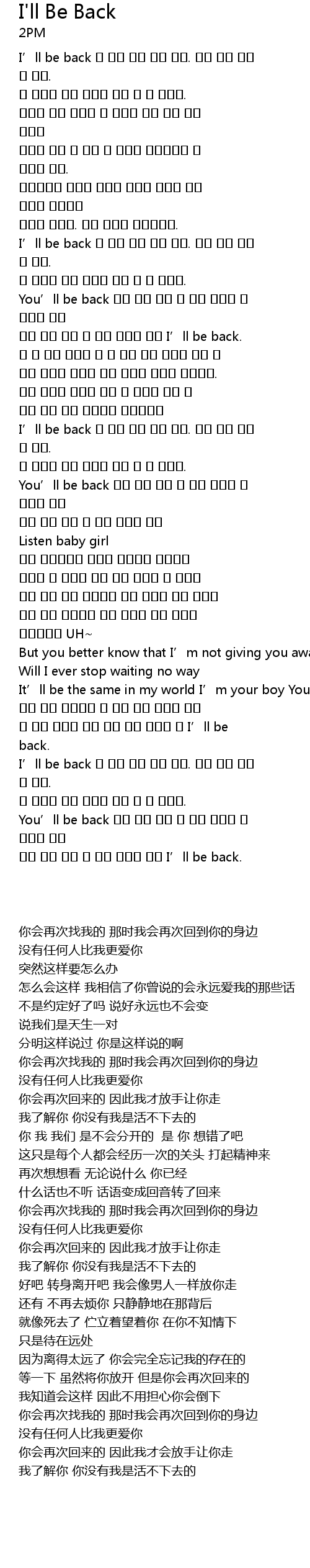 | [02:57.220] | 걸 알아 그러니 걱정 말아 네가 쓰러질 때 I’ll be back. |