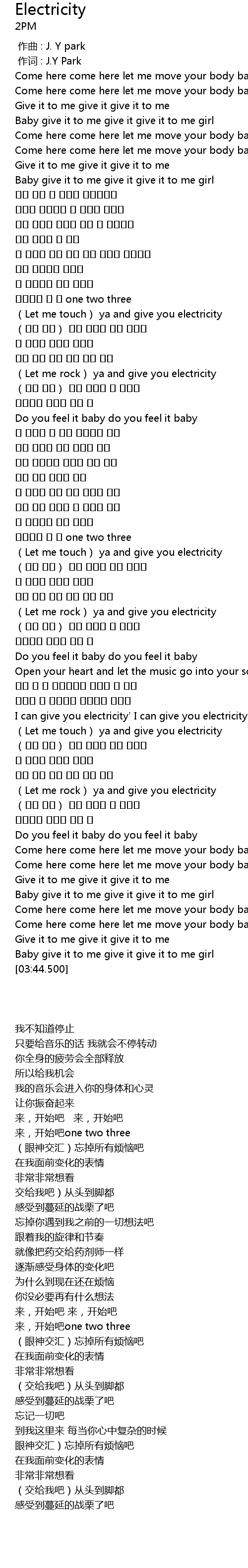 | [00:01.00] | 作词 : J.Y Park |