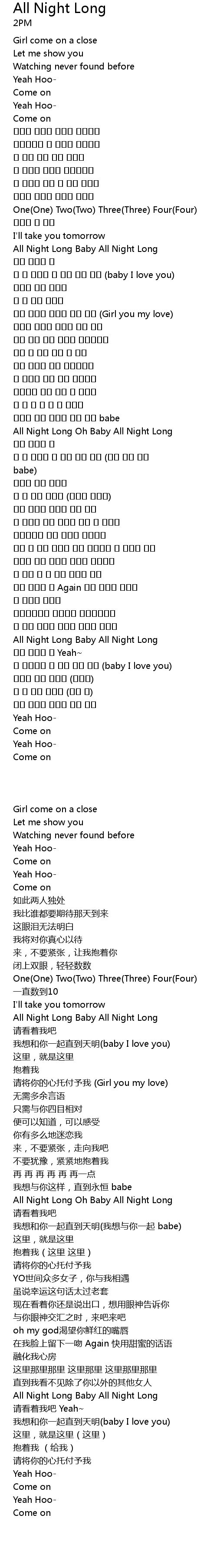 | [03:00.950] | 해 뜰때까지 난 너와 있고 싶어 (baby I love you) |