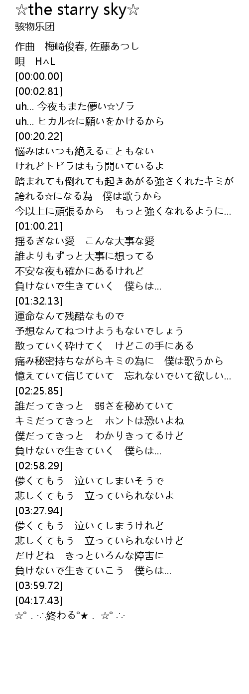 | [00:04.03] | uh... 今夜もまた儚い☆ゾラ |