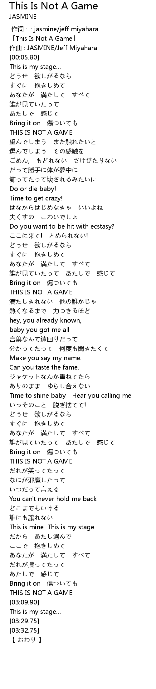 | [02:28.98] | THIS IS NOT A GAME |