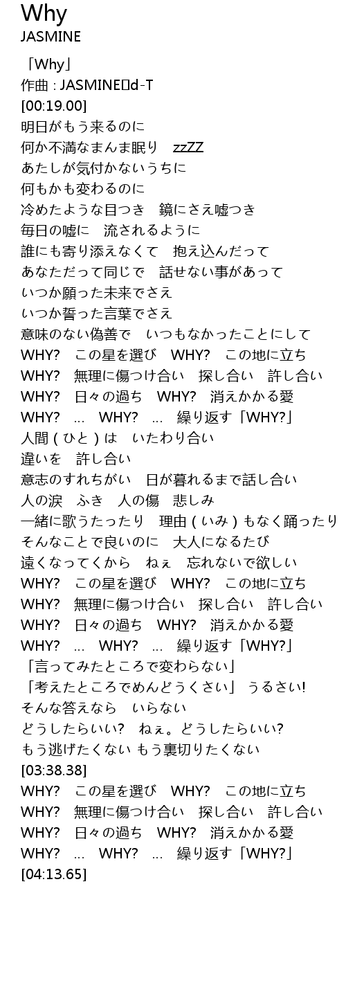 | [00:01.00] | 「Why」 |