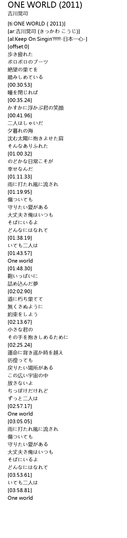 | [01:26.21] | 大丈夫さ俺はいつも |