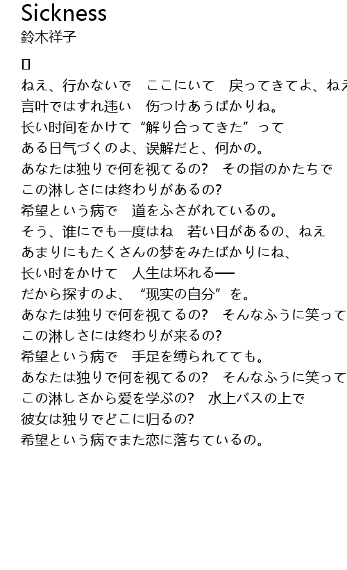 | 希望という病でまた恋に落ちているの。 |