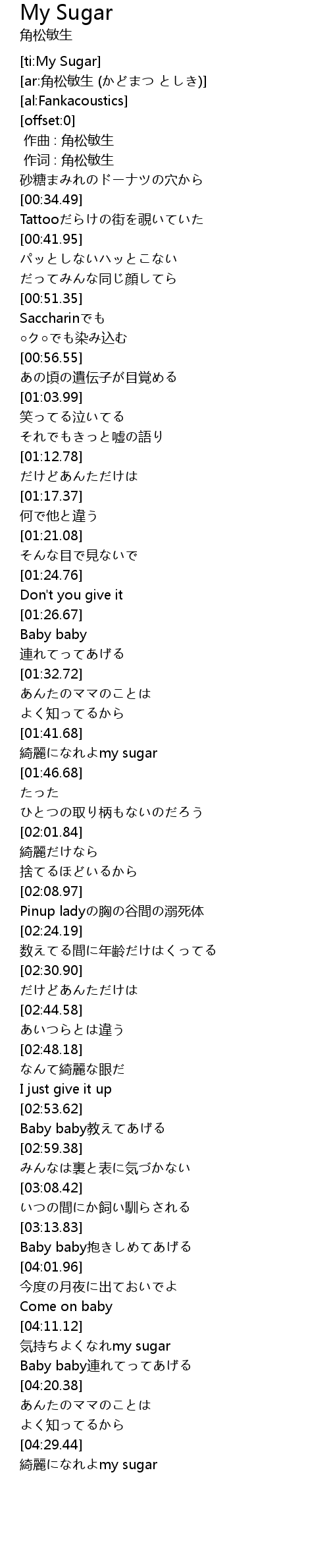 | [04:31.13] | 綺麗になれよmy sugar |