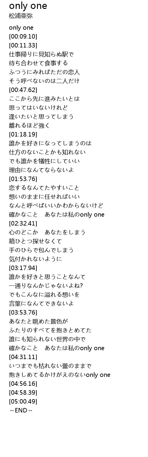 | [04:20.78] | 確かなこと あなたは私のonly one |