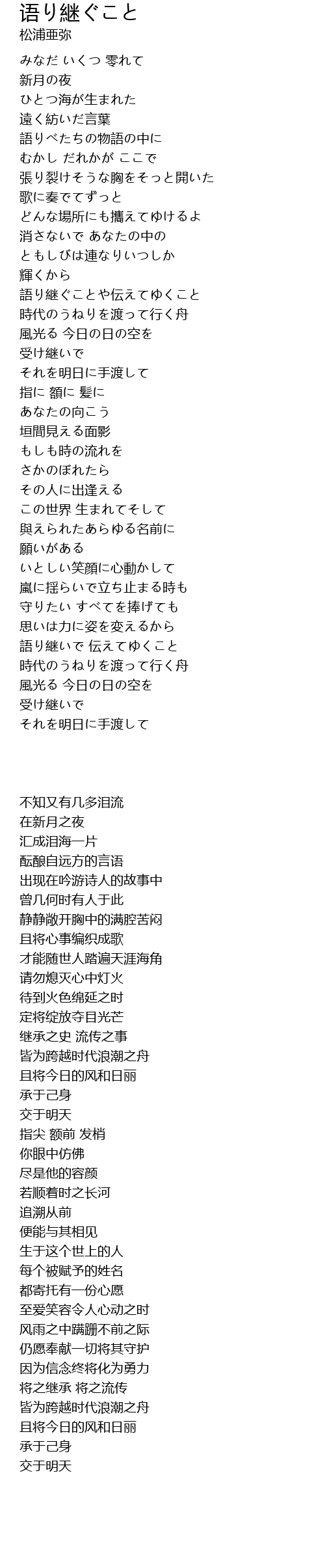| [03:32.60] | 語り継いで 伝えてゆくこと |