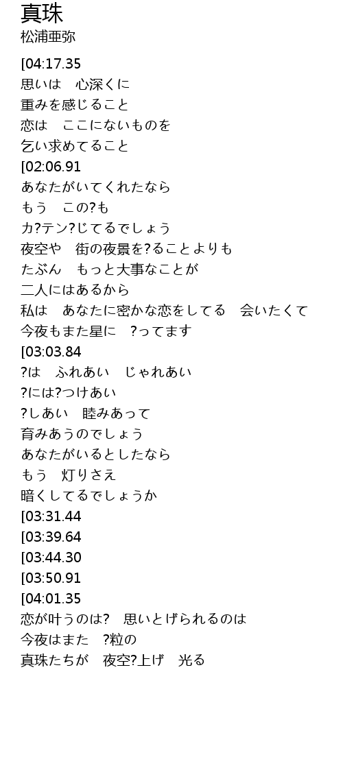 | [00:13.00][04:17.35] | 松浦亚弥-真珠 |