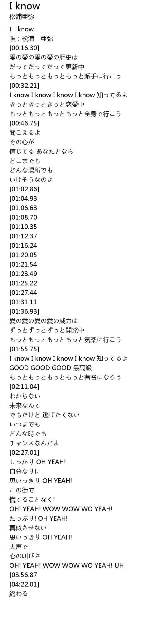 | [00:33.28] | I know I know I know I know 知ってるよ |