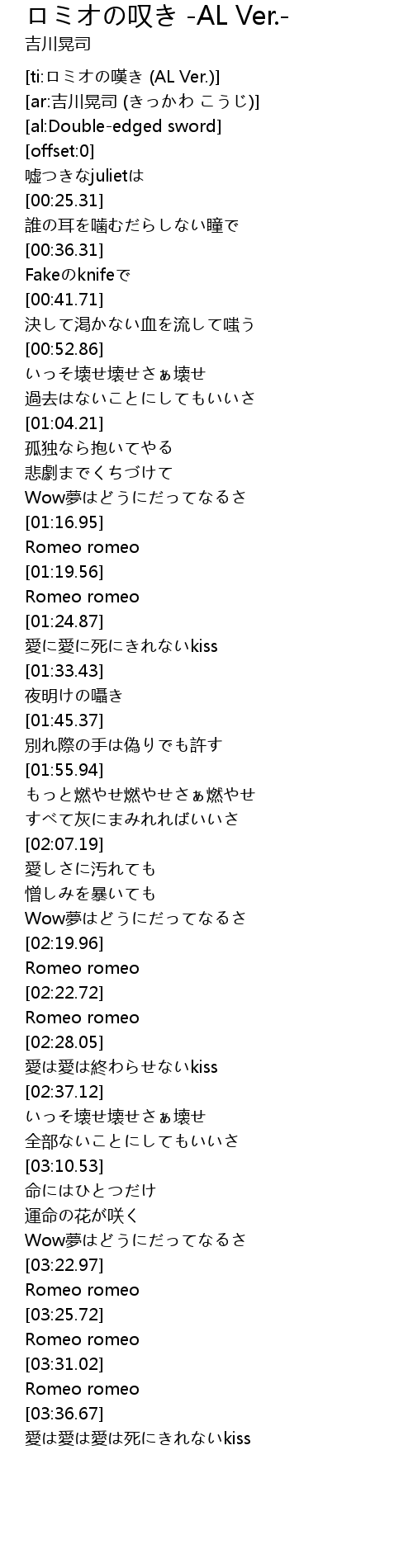 [ti:ロミオの嘆き (AL Ver.)] |