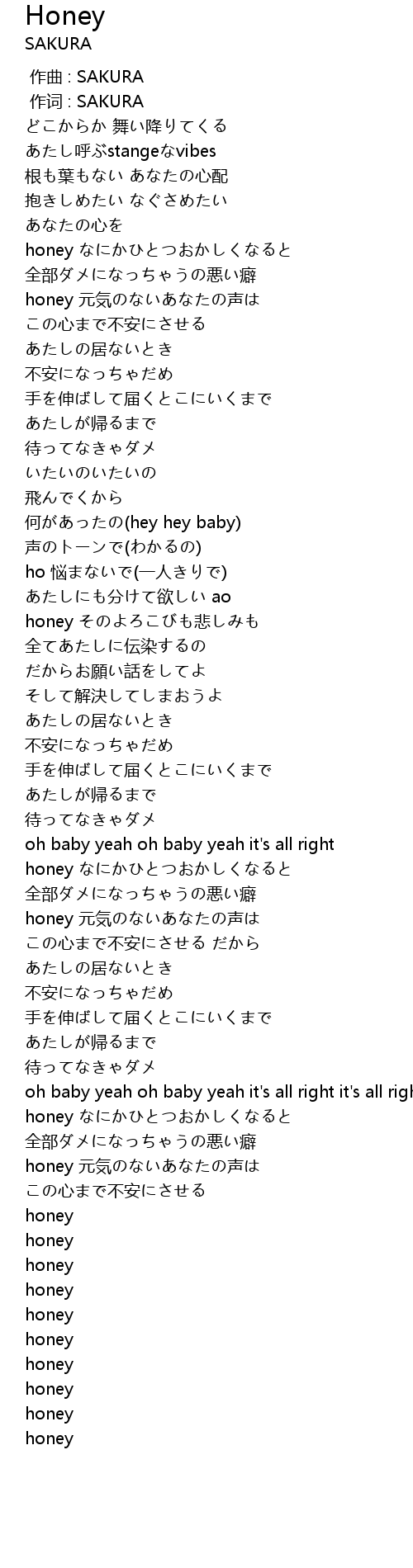 | [03:59.964] | honey 元気のないあなたの声は |
