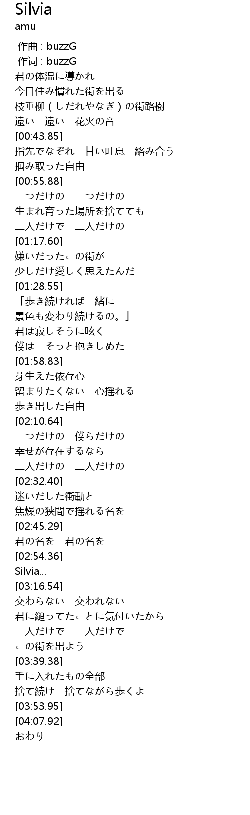 | [00:44.95] | 指先でなぞれ 甘い吐息 絡み合う |