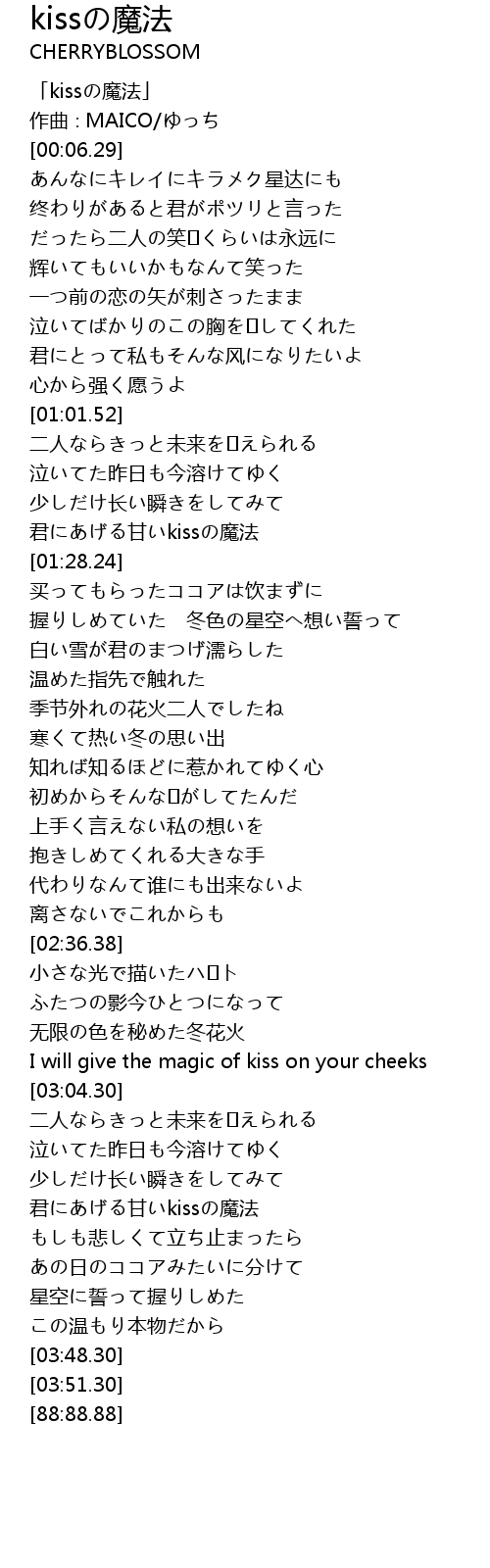 | [03:25.36] | 君にあげる甘いkissの魔法 |