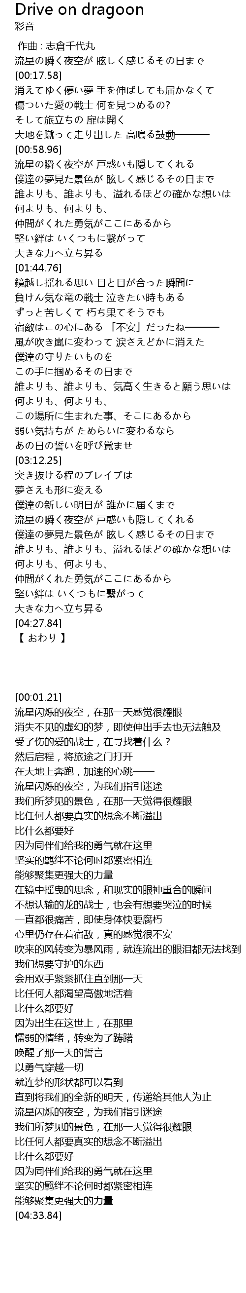 | [02:05.16] | 負けん気な竜の戦士 泣きたい時もある |