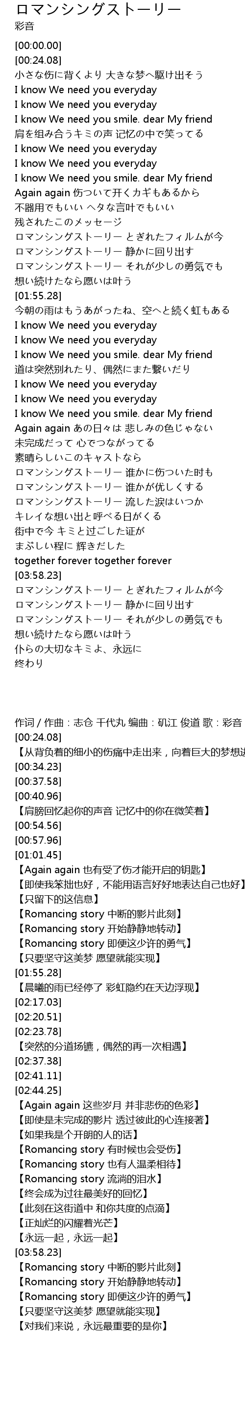 | [03:17.70] | ロマンシングストーリー 谁かが优しくする |