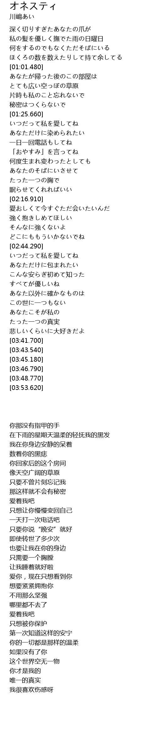 | [00:50.990] | ほくろの数を数えたりして持て余してる |