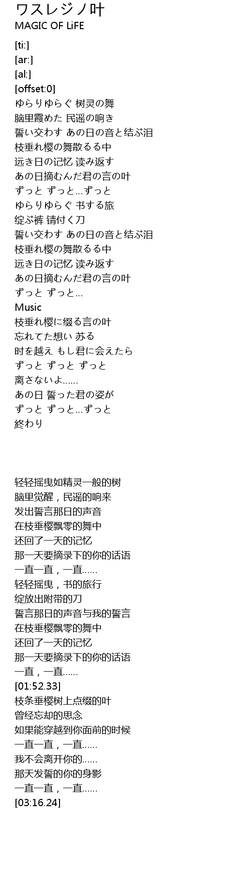 | [02:32.21] | 枝垂れ樱に缀る言の叶 |