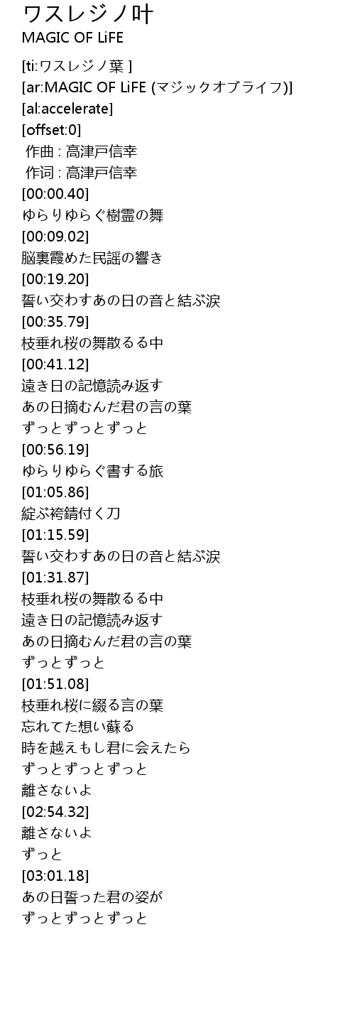 | [02:32.43] | 枝垂れ桜に綴る言の葉 |