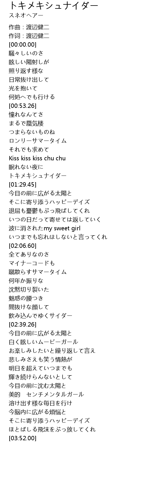 | [02:34.49] | 飲み込んでゆくサイダー |