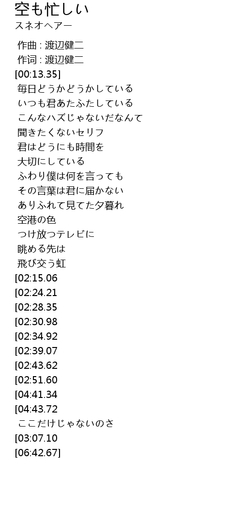 | [04:58.96][04:43.72][02:59.00] | 空も忙しいのさ |