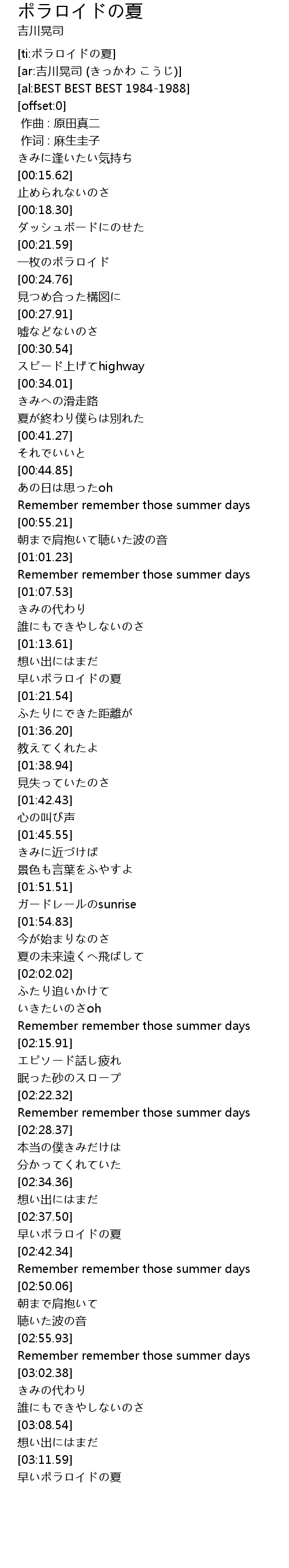 | [00:37.31] | 夏が終わり僕らは別れた |