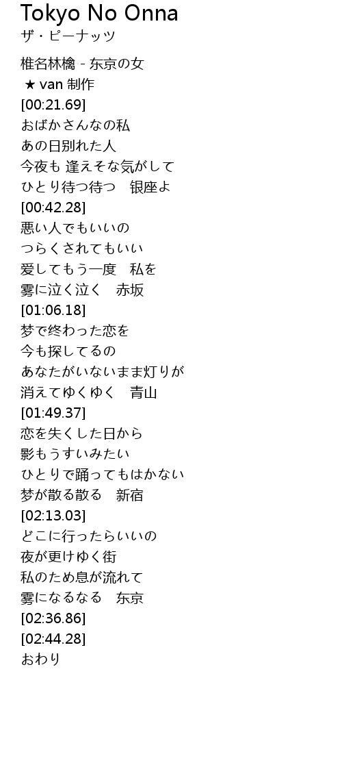 | [00:00.00] | 椎名林檎 - 东京の女 |