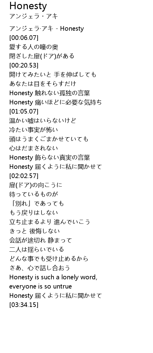 | [01:33.63] | Honesty 飾らない真実の言葉 |