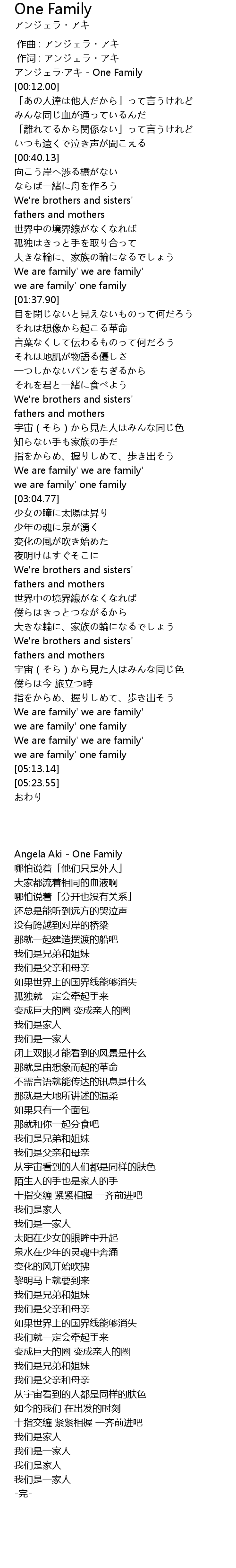 | [00:00.00] | アンジェラ·アキ - One Family |
