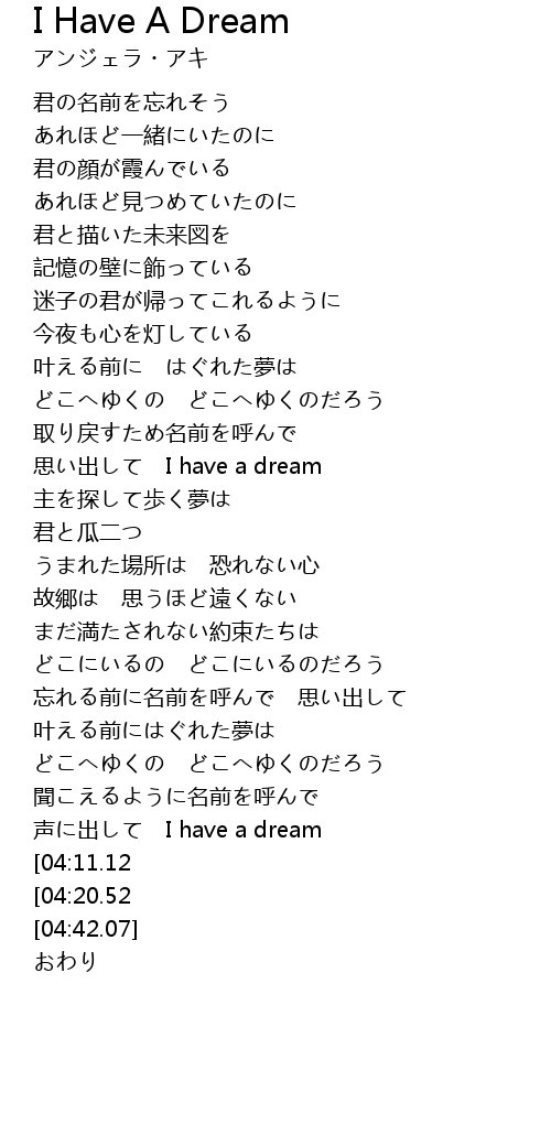 | [02:47.15] | 声に出して I have a dream |
