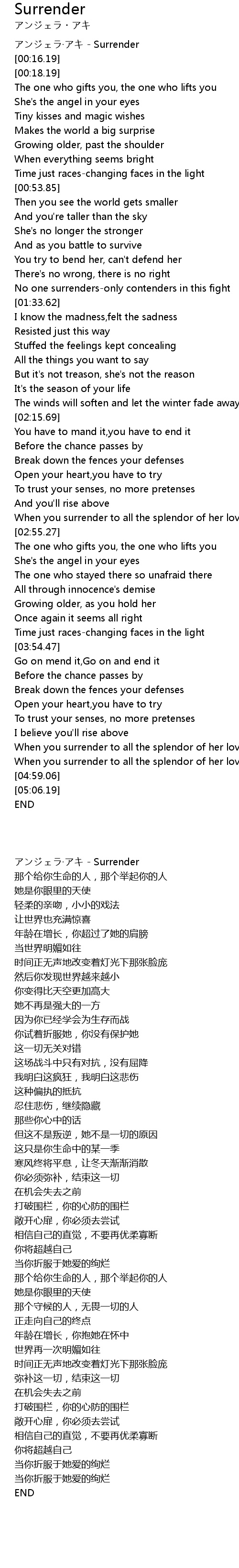 | [00:00.00] | アンジェラ·アキ - Surrender |